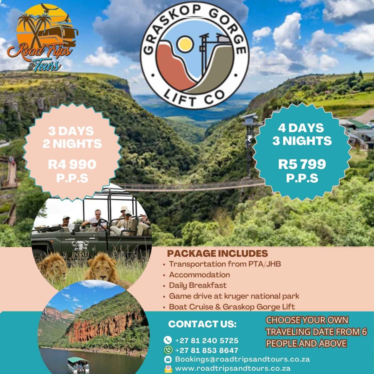 Call us today or Contact us to get a trip..